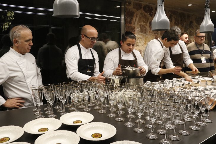 Els quinze restaurants que tenen estrelles Michelin a la demarcació de Girona ha cuinat conjuntament un menú aquest dimarts al vespre en la segona edició del 'Sopar Singular' que organitza el Fòrum Gastronòmic de Girona.